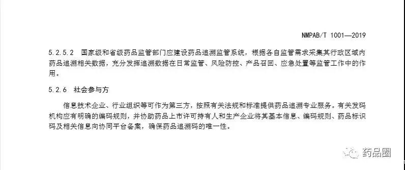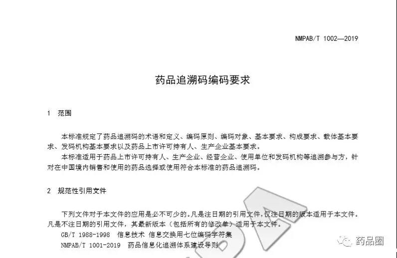 为贯彻落实《国务院办公厅关于加快推进重要产品追溯体系建设的意见》(国办发〔2015〕95号)和《国家药监局关于药品信息化追溯体系建设的指导意见》(国药监药管〔2018〕35号)等文件要求,推动药品信息化追溯体系建设,国家药监局组织编制了《药品信息化追溯体系建设导则》和《药品追溯码编码要求》两项信息化标准(见附件)。现予发布,自发布之日起实施。